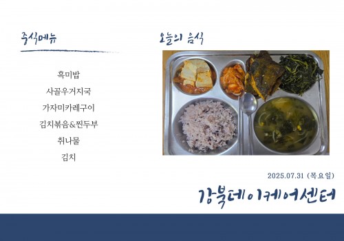 [데이케어] 2025년 7월 31일(목) 중식·간식·석식 식단