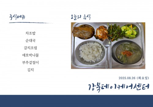 [데이케어] 2025년 8월 26일(화) 중식·간식·석식 식단
