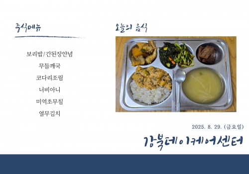 [데이케어] 2025년 8월 29일(금) 중식·간식·석식 식단