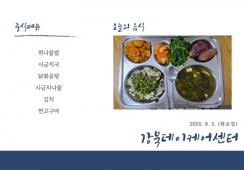 [데이케어] 2025년 9월 2일(화) 중식·간식·석식 식단