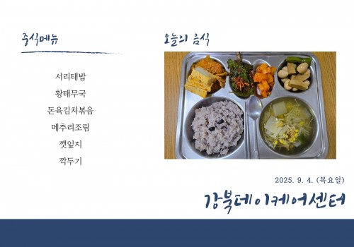 [데이케어] 2025년 9월 4일(목) 중식·간식·석식 식단