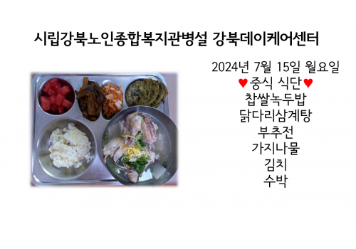 [데이케어] 2024년 7월 15일(월) 중식·간식·석식 식단