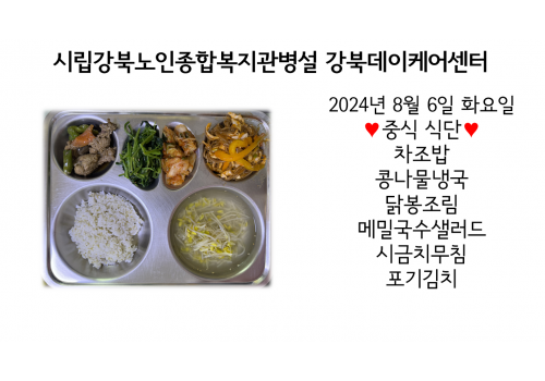 [데이케어] 2024년 8월 6일(화) 중식·간식·석식 식단