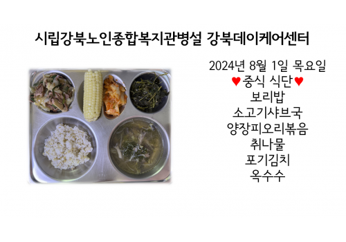 [데이케어] 2024년 8월 1일(목) 중식·간식·석식 식단