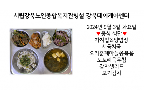 [데이케어] 2024년 9월 3일(화) 중식·간식·석식 식단