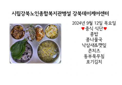 [데이케어] 2024년 9월12일(목) 중식·간식·석식 식단