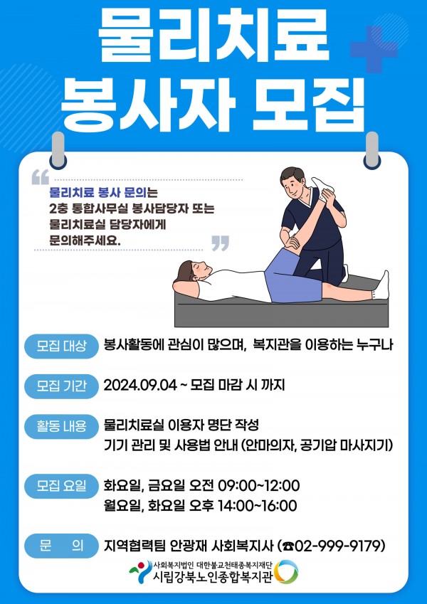 ■ 모집요일 : 화요일, 금요일 오전 9:00~12:00 / 월요일, 화요일 오후 14:00~16:00