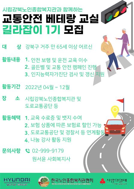 지역복지과에서는 교통안전 내재화를 통해 노인의 자기 보호 능력을 향상시킬 수 있는 교통안전 프로그램을 진행하고자 다음과 같이 참여자를 모집합니다.