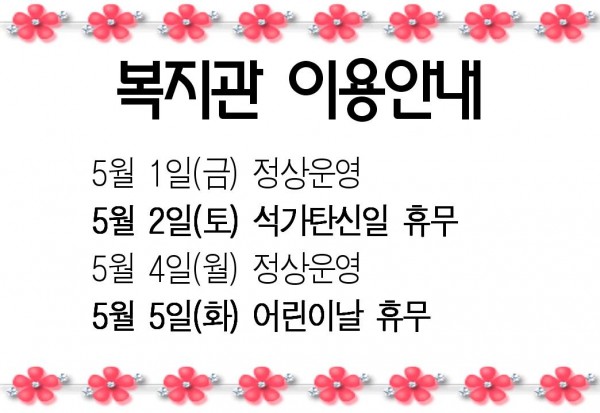 공지 5월 복지관 휴무안내