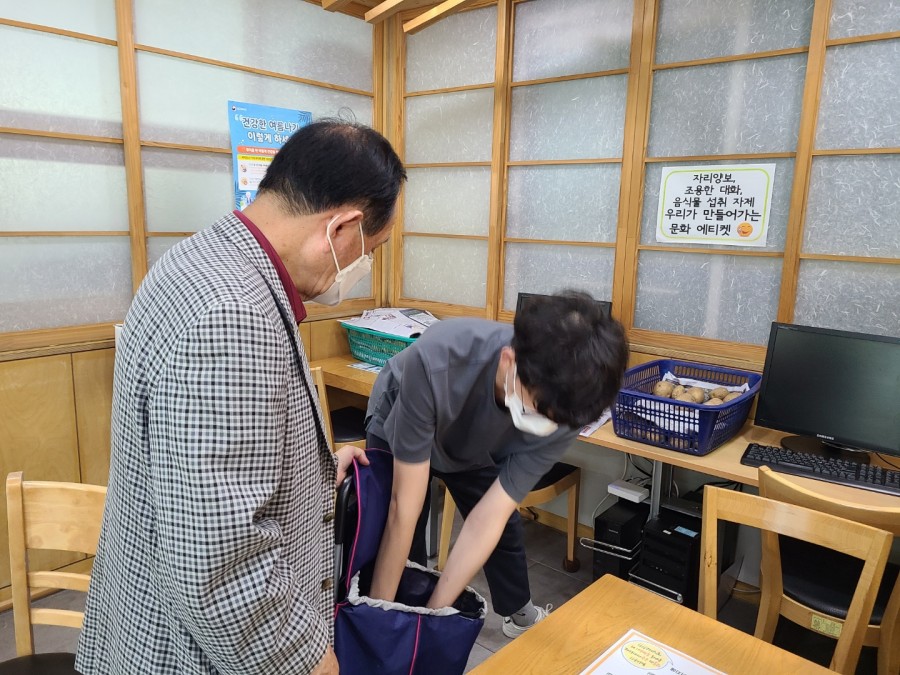 수미햇감자는 7/14(수) 저소득 어르신 52명에게 약5kg씩 배분하였습니다.