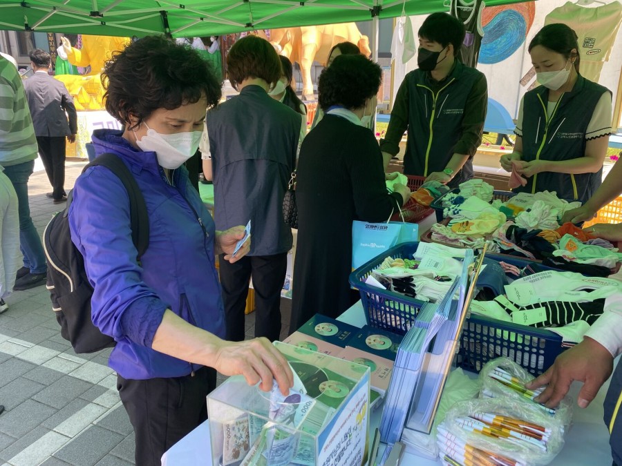 천원을 후원하는 지역주민에 한해 양말 또는 의류를 증정하였으며,