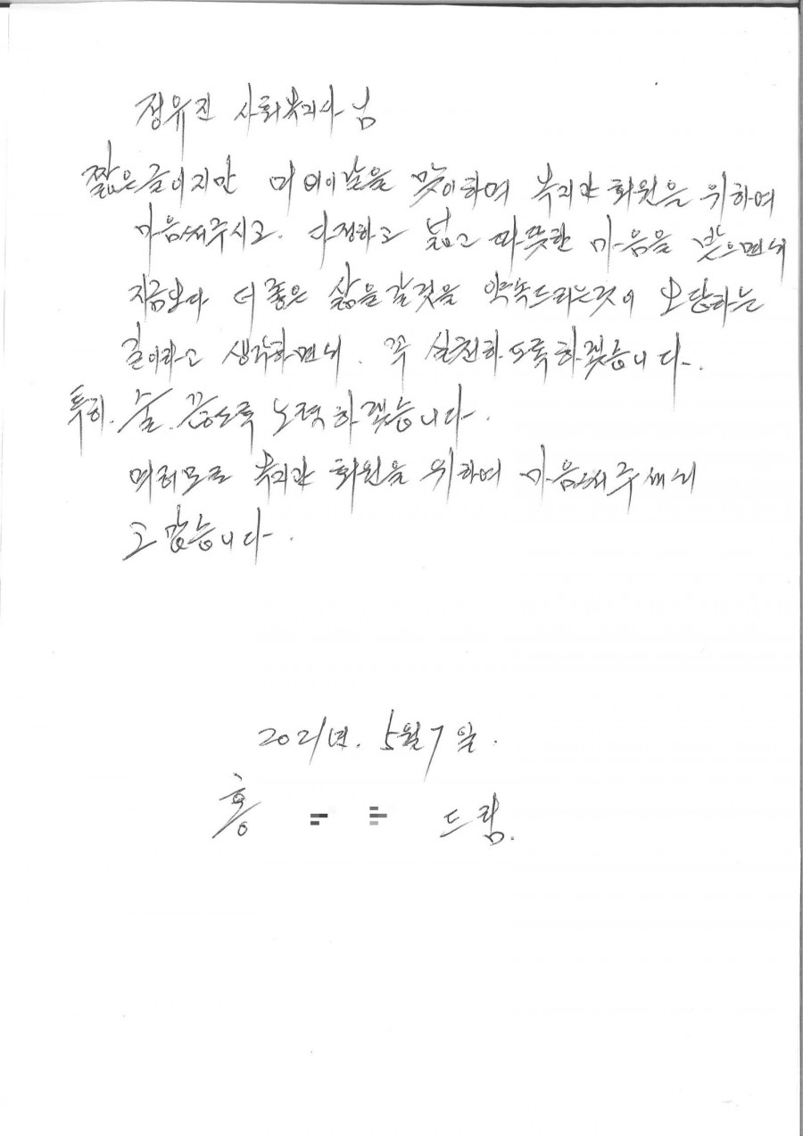 따뜻한 편지를 보내주신 어르신의 마음에 벅찬 감동이였습니다. 이 자리를 빌어 감사 인사드립니다.