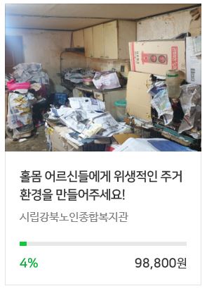 2. 검색 후 하단 시립강북노인종합복지관 모금함 '홀몸 어르신들에게 위생적인 주거환경을 만들어주세요!' 클릭