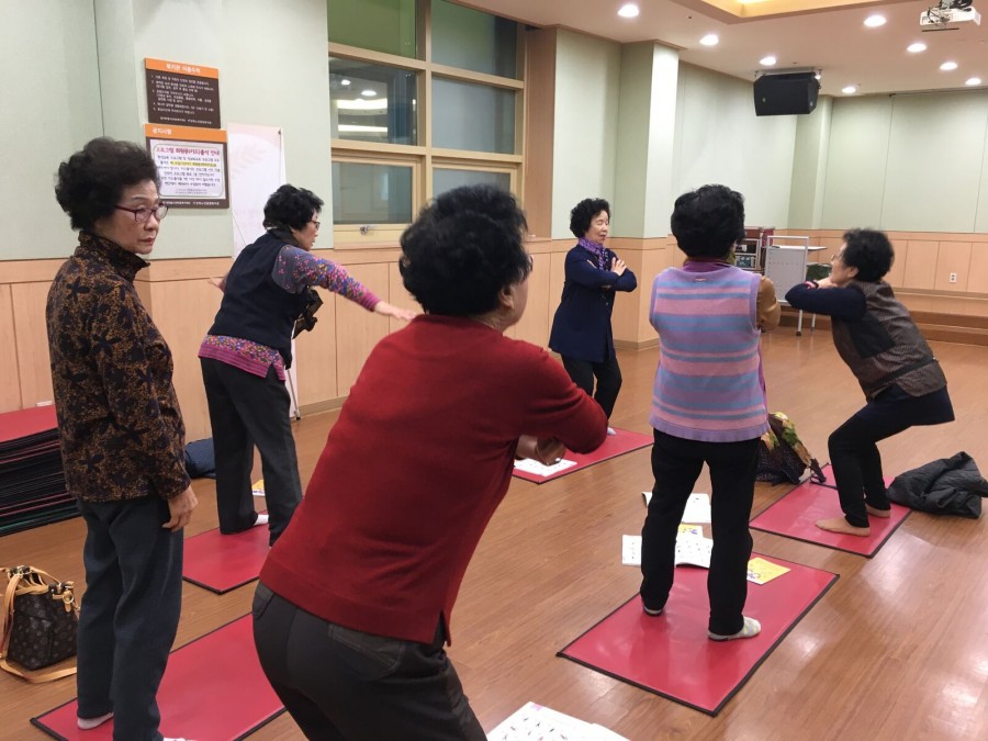 금일 자조모임은 치매예방운동교실에서 진행 할 운동법을 함께 연습하는 시간으로 진행하였습니다. ▣ 진행일시 : 2019.11.13(수), 13:00~14:00▣ 진행장소 : 정진실▣ 진행대상 : 치매예방 서포터즈 7명