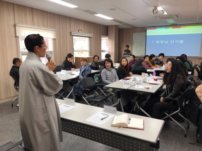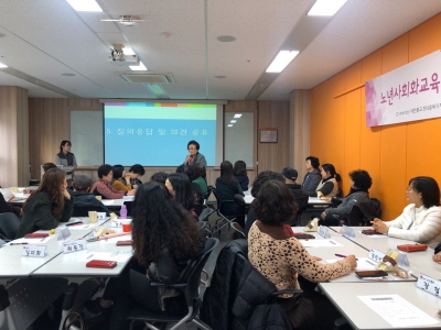 노년사회화교육사업에서는 강사들을 대상으로 2019년 하반기 노년사회화교육사업 강사 간담회를 진행하였습니다. 강사간담회를 통해 2020년 노년사회화교육사업 운영방향을 안내하고 강사 상호간의 결속력 강화와 직원들과의 소통을 통해 노년사회화교육사업 수업의 질을 향상하고 새로운 열정을 가지고 수업을 진행하도록 격려하는 시간이 되었습니다.