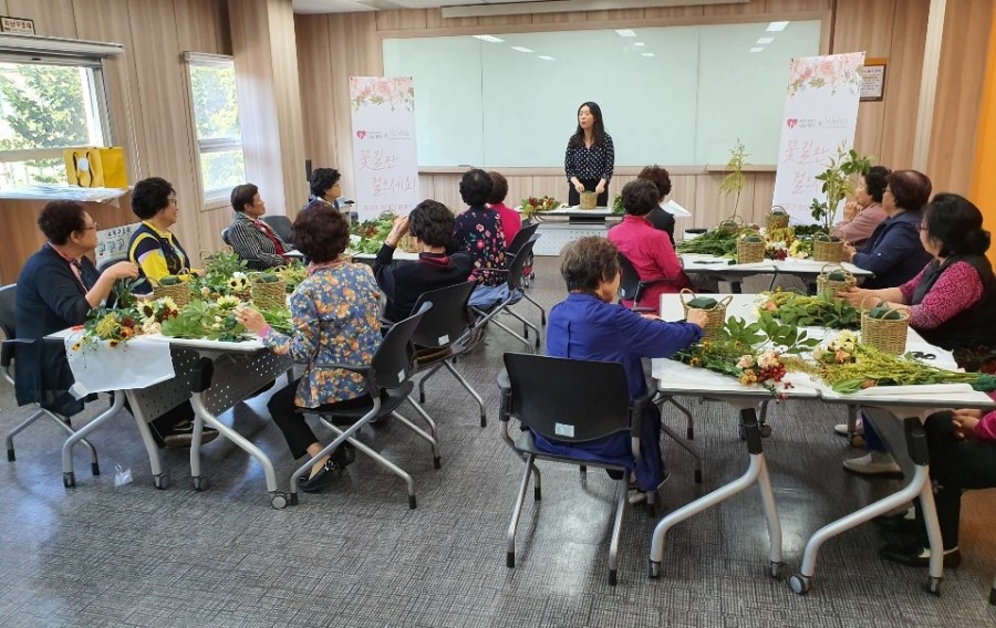 지역협력팀에서는 현대오일뱅크1%나눔재단과 연계하여 꽃꽂이 프로그램을 진행하였습니다.