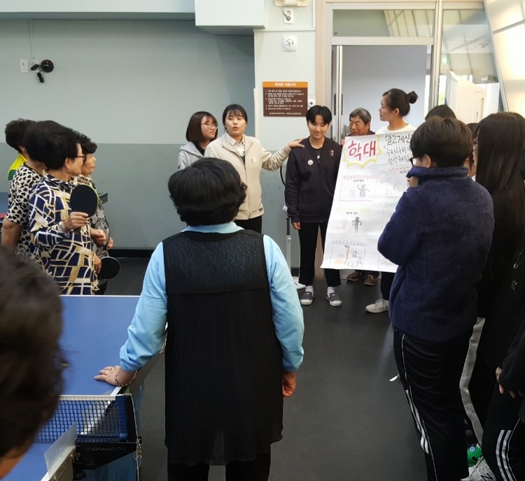 이번 봉사활동은 노인학대 및 노인보호구역에 대해 학생들이 직접 포스터를 만들고 어르신들에게 홍보하는 캠페인을 진행하였습니다.