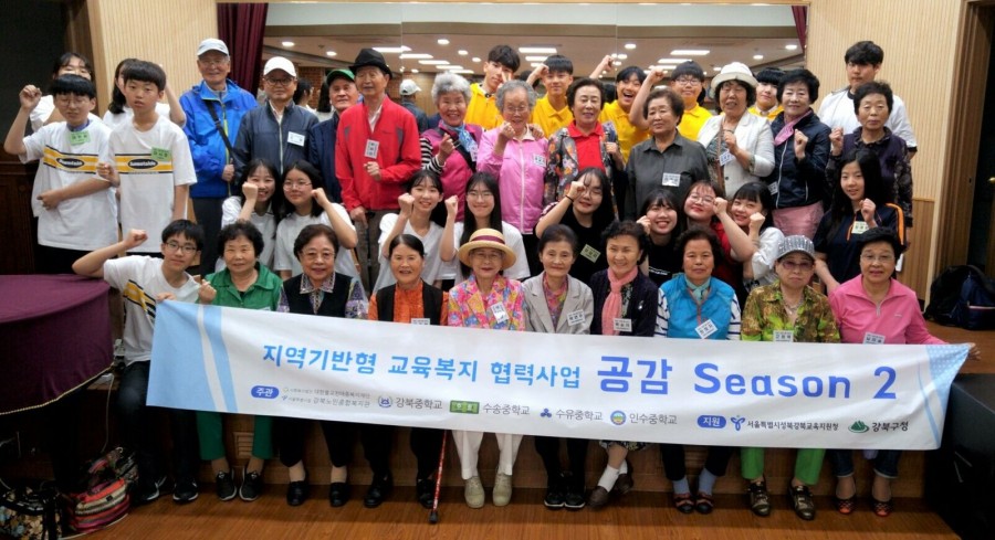지역협력팀에서는 어르신과 중학생을 대상으로 지역기반형 교육복지 협력사업 '공감' 발대식 및 오리엔테이션을 진행하였습니다. 발대식과 오리엔테이션을 통해 1·3 세대가 함께 소통하고 교류할 수 있는 통합프로그램을 안내하고, 세대 간 상호작용 및 관계형성을 하는 체험활동 시간을 가졌습니다. 앞으로 6회기 동안 진행할 예정이며, 참여자 기억에 남는 행복한 활동이 되었으면 합니다.