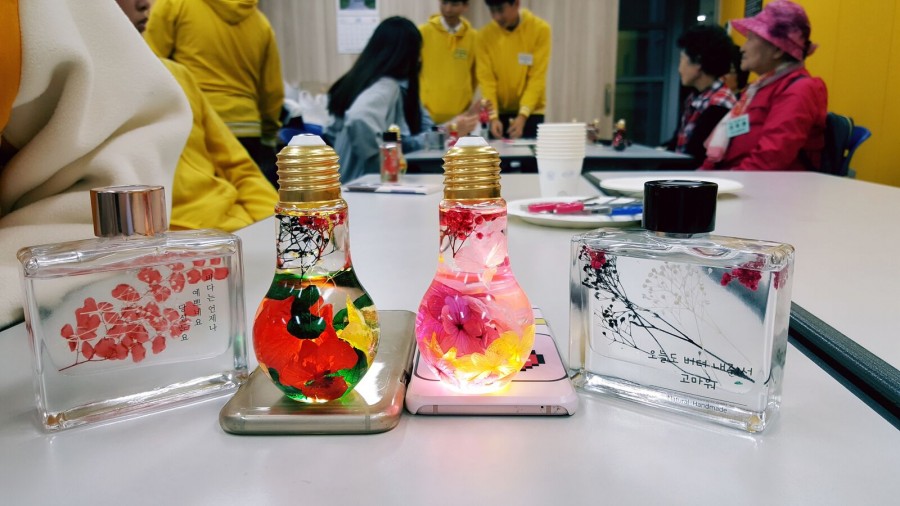 지역협력팀에서는 수유중학교, 인수중학교와 함께 지역기반형 교육복지협력사업 '공감' 하반기 2회기 활동으로 하바리움공예를 진행하였습니다. 1-3세대가 함께 다양한 플라워를 이용하여 나만의 꽃병을 만들어보았습니다. 대다수의 참여자가 처음 접하는 활동이라 생소하였지만, 모두가 재미있게 활동하여 마무리하였습니다.