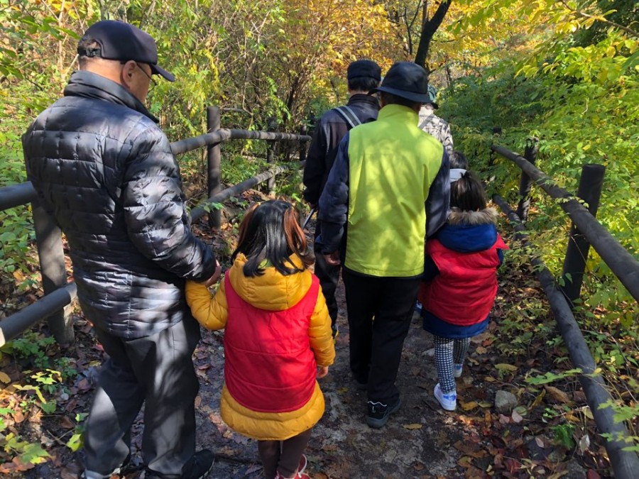 참여복지과 실버문화재지킴이사업 1. 3세대 통합 프로그램 '할아버지. 할머니와 함께 걷는 북한산둘레길' 자원봉사 어르신들과 강북구 오렌지어린이집 대상으로 프로그램 진행하였습니다. 북한산둘레길 걷기 및 전통민화파우치 만들기 체험활동을 통해 1.3세대통합에 기여하는 기회를 가졌습니다.