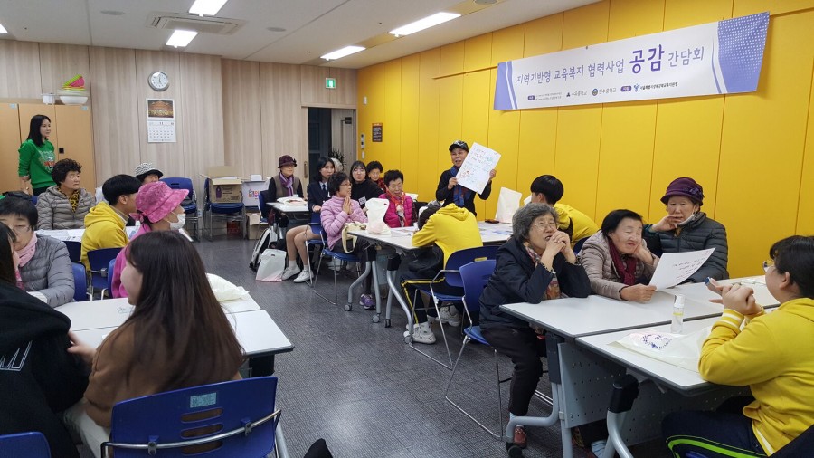 지역협력팀에서는 수유중학교, 인수중학교와 함께 지역기반형 교육복지협력사업 '공감' 하반기 간담회를 진행하였습니다. 간담회 주요내용은 하반기 프로그램 운영 보고 및 의견 수렴이었으며, 하반기 나들이 미션 관련 이야기를 나누는 시간을 가졌습니다. 조별로 어르신과 학생참여자가 머리를 맞대고 고민하여 좋은 의견이 많이 나왔습니다. 나들이 미션은 추후 각 기관별 담당자 회의를 통해 실현가능한 미션으로 결정할 예정입니다.