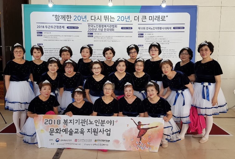 노년사회화교육사업에서는 문화체육관광부, 한국문화예술교육진흥원, 한국노인종합복지관협회에서 지원하는 2018년 문화예술교육지원사업 '두근두근 청춘제'에 참석하였습니다. 어르신들이 배워온 문화예술교육을 바탕으로 즐김, 성장, 꿈, 도전 등 다양한 카테고리에 맞춰서 청춘제가 진행되었으며 어르신들이 즐기는 시간이 되었습니다.