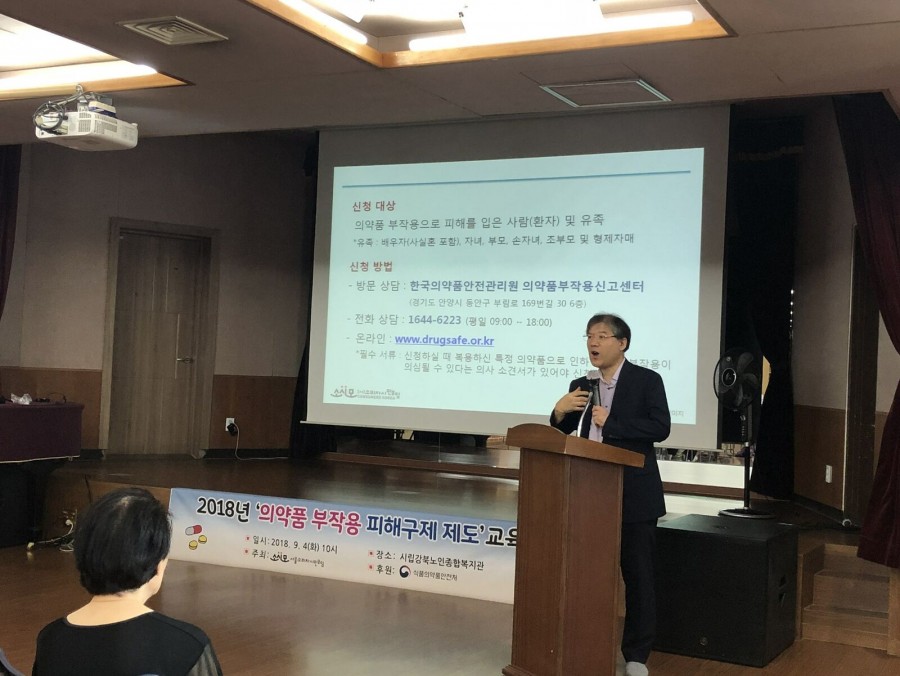 본 복지관 주민참여팀에서는 소비자시민모임의 교육으로 복지관 회원 및 지역주민 40명을 대상으로 의약품 부작용 피해규제 강의를 진행하였습니다. 의약품 복용 지식과 증상, 의약품 부작용 피해규제 제도와 관련한 내용으로 진행하였습니다.