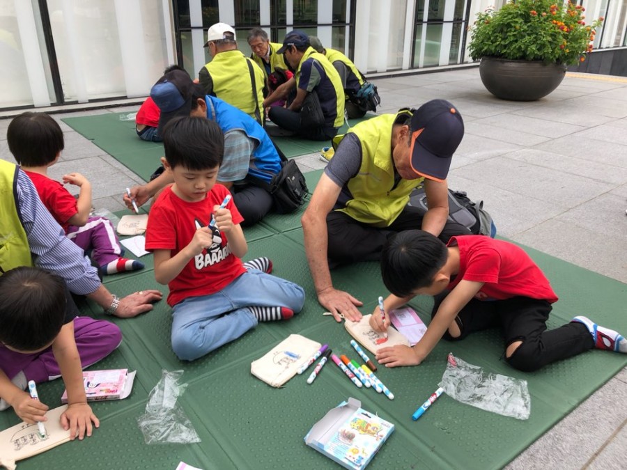 참여복지과 실버문화재지킴이사업 1. 3세대 통합 프로그램 '할아버지. 할머니와 함께 걷는 북한산둘레길' 자원봉사 어르신들과 강북구 꽃길어린이집 대상으로 프로그램 진행하였습니다. 북한산둘레길 걷기 및 전통민화파우치 만들기 체험활동을 통해 1.3세대통합에 기여하는 기회를 가졌습니다.