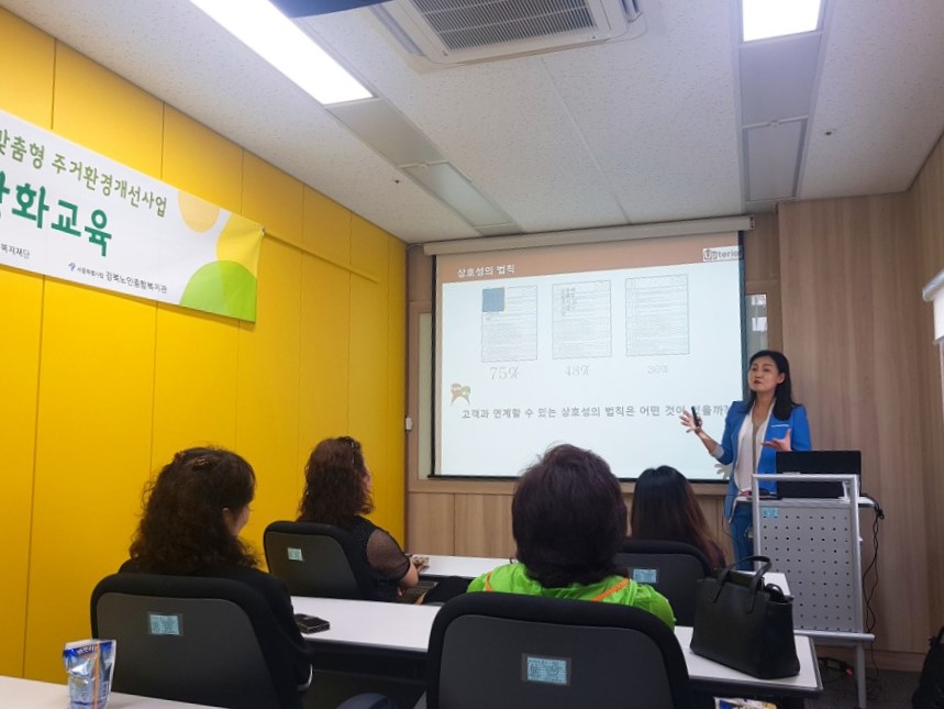 지역복지활성화사업에서는 맞춤형주거환경개선사업 참여자 엔젤맘 봉사자를 대상으로 역량강화교육을 실시하였습니다. 교육은 총 5회기로 진행되었고 설득의 심리학, 집안의 숨은 공간 활용하기, 물건들의 제자리 찾기, 각 영역의 정리 매뉴얼, 천연세제의 활용(베이킹소다. 식초. 이엠)에 관한 교육을 진행했습니다. 바쁜시간에도 교육에 참여해주신 엔젤맘봉사자들께 감사드립니다.