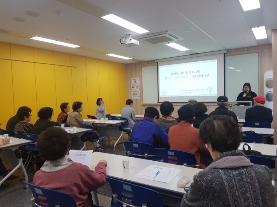 지역협력팀에서는 웰다잉프로그램 「준비된 오후」사업 1기 오리엔테이션을 진행하였습니다. 웰다잉 프로그램 구성 내용과 일정 등에 대한 정보를 제공하고 공지사항 및 질의응답 시간을 가졌습니다.