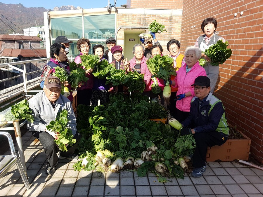 본 복지관 옥상텃밭에서 배추와 무를 진행하였습니다. 수확한 무를 가지고 김치를 만들어 수육과 함께 나눠먹는 즐거움을 공유하였습니다.