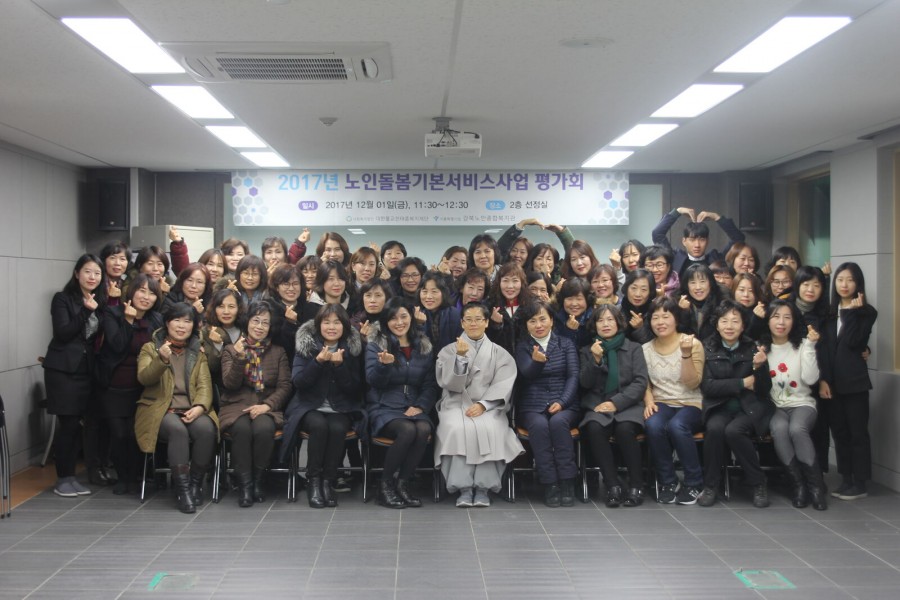 지역복지과에서는 노인돌봄기본서비스사업 독거노인 생활관리사 46명을 대상으로 2017년 노인돌봄기본서비스 평가회를 진행하였습니다. 2017년 한해동안 강북구 독거노인을 위하여 힘써주셔서 감사드립니다.