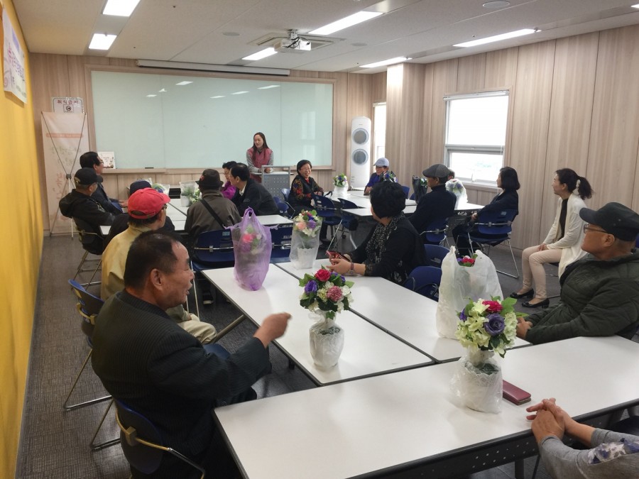 자원봉사자육성사업에서는 국민연금공단성북강북지사의 지원으로 저소득 남성 어르신을 대상으로 '라일락교실'을 진행하고 있습니다. 프로그램을 마무리하며 진행된 사업에 대한 평가회를 진행하여 어르신들과 국민연금 수급 자원봉사자들의 소감을 공유하며 뜻깊은 시간을 보냈습니다.▣ 진행일시 : 2017년 10월 26일(금), 11:00~13:00▣ 진행장소 : 3층 슬기실