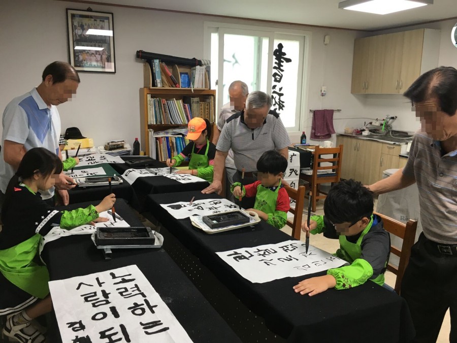 참여복지과에서는 지역아동센터와 연계하여 솔샘길경로당에 방문하여 여름방학 맞이 1,3세대 통합프로그램 서당교실을 진행하였습니다. 전통예절, 서예 기초 및 심화교육, 작품만들기를 통해 한국의 전통문화를 배우며 세대 간 교류기회가 증진될 수 있었습니다.