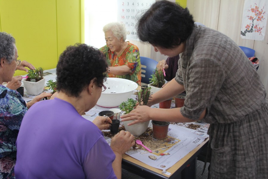 어르신들과 함께 다육식물을 모아심고 이름을 만들어주는 활동을 하였습니다.