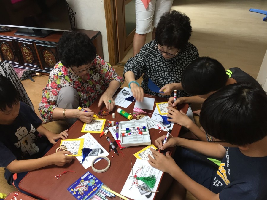 참여복지과에서는 송중동지역아동센터 아동들과 원송경로당이 협력하여  1·3세대 통합 프로그램 전통교실을 진행하였습니다. 전통꽃부채 만들기, 탈한지 하회탈 벽걸이 만들기, 민요수업을 통해 전통문화를 체험하며 옛것의 소중함을 느끼는 시간이 되었습니다.