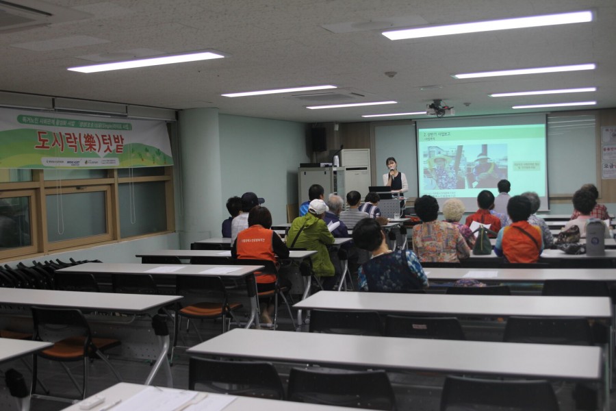 재가복지사업에서는 생명보험사회공헌위원회(미래에셋생명보험(주))가 지원하고 독거노인종합지원센터와 연계하여 독거노인 사회관계 활성화 사업 생생(生生)싱글(single)라이프사업- 도시락(樂)텃밭 사업 간담회를 진행하였습니다.