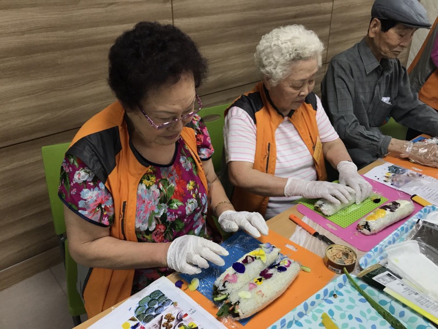 본 복지관 옥상텃밭에 열매채소를 심고 상추를 수확하는 활동을 하였으며, 어르신들이 직접 화전과 꽃김밥을 만드는 즐거운 요리활동도 진행하였습니다.