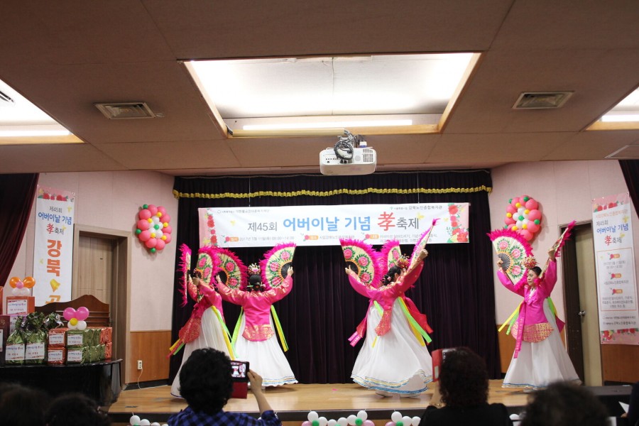 제45회 어버이날 기념 '孝 축제' 내용으로는 카네이션 달아드리기, 식전공연(오렌지어린이집, 도담어린이집, 희망강북봉사단[한국무용,댄스스포츠]), 기념식, 무료중식&기념품, 레크레이션&골든벨, 행운권 추첨 및 이벤트 부스(먹거리코너, 다드&투호, 네일아트, 염주만들기, 즉석사진, 부스박락회), 바자회, 영화상영이 진행되었습니다.