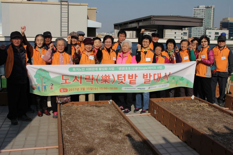 재가복지사업에서는 생명보험사회공헌위원회(미래에셋생명보험(주))가 지원하고 독거노인종합지원센터와 연계하여 독거노인 사회관계 활성화 사업 생생(生生)싱글(single)라이프사업- 도시락(樂)텃밭 사업 발대식을 진행하였습니다.
