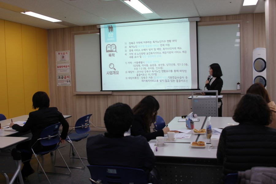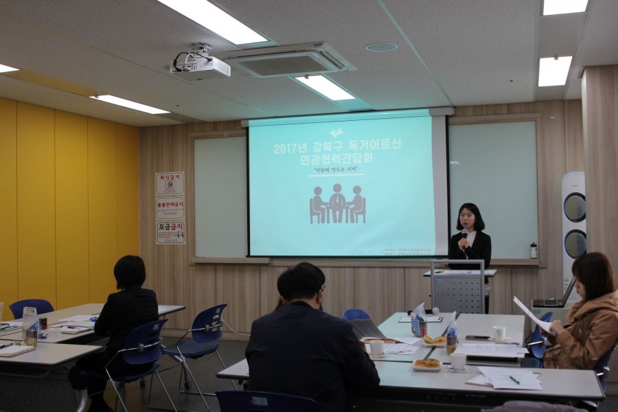 복지사업과에서는 독거노인맞춤복지서비스사업과 관련하여 2017년 강북구 독거어르신 민관협력 간담회를 진행하였습니다.