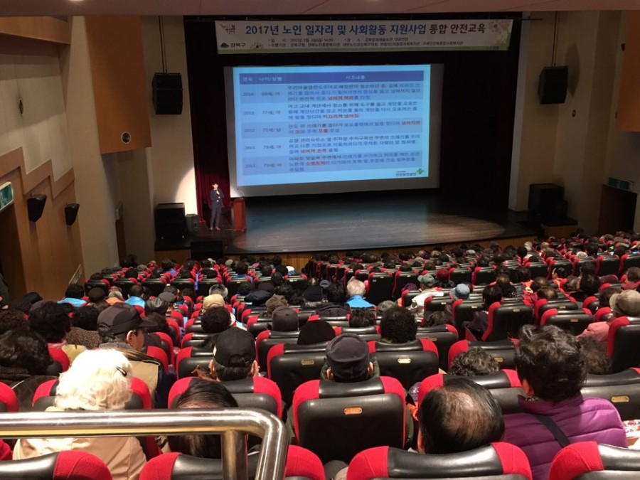 복지행정과 일자리사업팀 노인사회활동지원사업에서는 3월 3일(금) 2017년 노인 일자리 및 사회활동 지원사업 통합 발대식 및 안전교육을 거동불편노인돌봄(연중)사업단 참여자를 대상으로 2017년 노인사회활동지원사업 시작의 알림 및 안전교육에 참석하였습니다. 구청장 인사말, 기관장소개, 다짐문 발표 등으로 진행되었습니다.