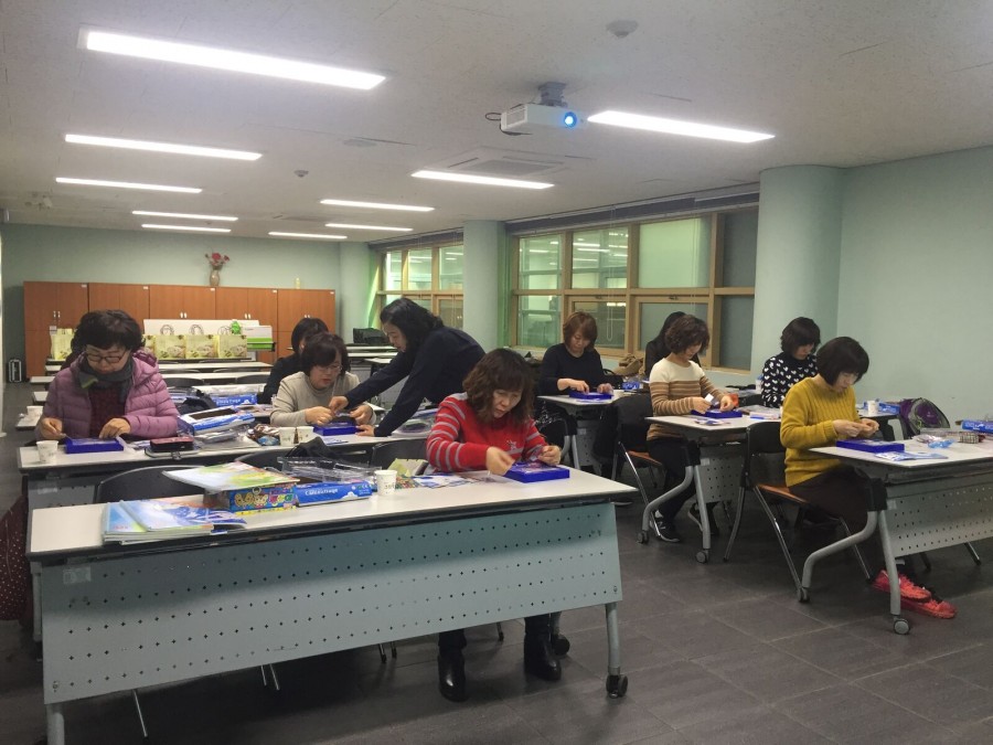 사례개발팀에서는 '똑똑! 도시락, 치매예방교육 지원사업'에 참여하는 생활관리사 10명을 대상으로 치매서포터즈 양성과 역량강화를 위하여 8차 양성교육을 실시하였습니다. 금일에는 두뇌체조, 창의교구(미노스), 보드(북극곰), 두뇌퍼즐, 그리기(양손 이용하여 그림 그리기) 등이 진행되었습니다.