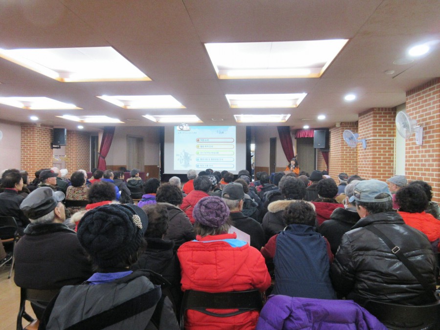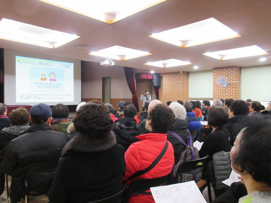 복지행정과 일자리팀 노인사회활동지원사업에서는 거동불편노인돌봄사업 참여자들 110명 대상으로 활동의 질을 향상시키고자 지난 2017년 2월 3일(금)에 OT 및 혹한기 대비 활동교육을 진행하였습니다.