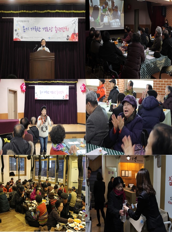 기획경로당팀에서는 집중관리 경로당 52개소 임원을 대상으로 연말을 맞이하여 한해동안 진행된 사업을 점검하고, 여가문화제공 및 경로당간의 교류를 활성화할 수 있는 기회를 제공을 통하여 참여자간의 소속감 증진을 도모하고자 지난 12월 9일(금)에 "2016년 경로당활성화사업 송년잔치를 진행하였습니다.