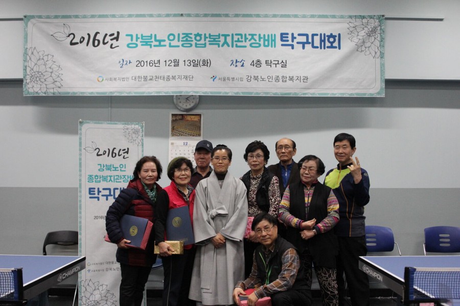 또한 강북노인복지관장배 탁구대회를 개최하여 어르신들의 여가문화를 엿보고 실력을 겨루며 즐거운 시간을 보냈습니다. 이를 통해 복지관에 대한 만족도를 향상시킬 수 있었으며 1년 동안 진행된 프로그램을 마무리하는 기회를 가졌습니다.