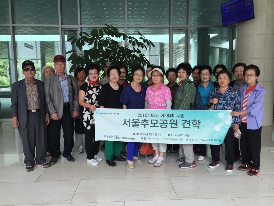 본 복지관 사회교육사업에서는 서울시의 보조금을 지원받아 2016 어르신 아카데미사업을 진행하고 있습니다. 이와 관련하여 참여 어르신들과 함께 서울추모공원에 방문하여 '행복한 삶, 행복한 죽음' 이라는 주제로 강의를 듣고 추모공원을 둘러보는 시간을 가졌습니다. 교육과 함께 서울추모공원을 방문하여 죽음에 대해 생각해볼 수 있는 기회가 되었습니다.