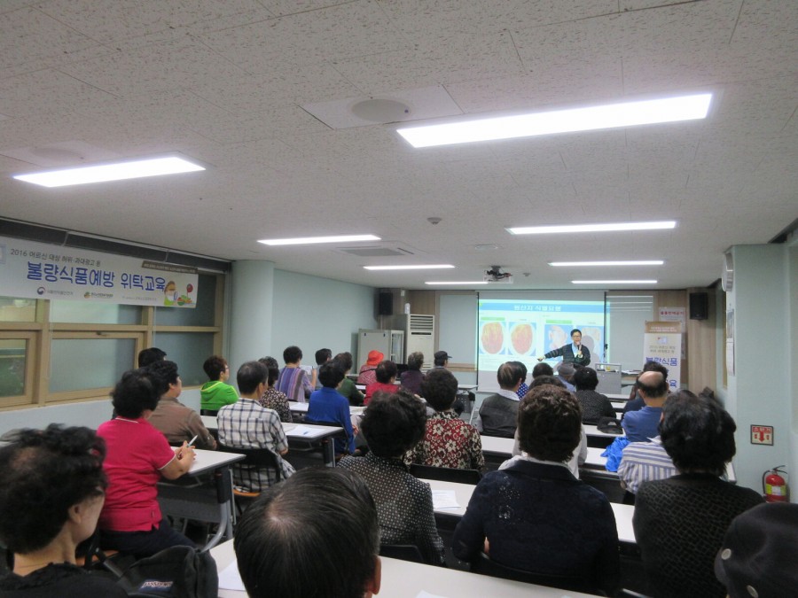 사회교육사업에서는 식품의약품안전처, 한국노인종합복지관협회의 지원으로 지역 내 어르신의 사기피해예방을 위해 불량식품예방(떴다방) 교육 1회기를 진행하였습니다.