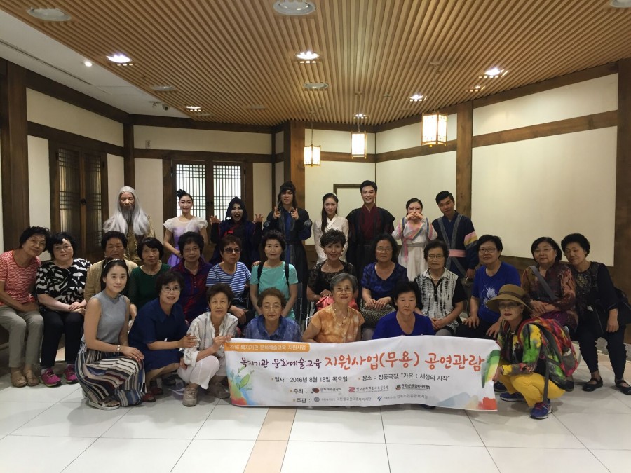 본 복지관 사회교육사업에서는 한국문화예술진흥원과 한국노인복지관협회에서 지원하는 문화예술교육 지원사업 무용을 진행하고 있습니다. 공연관람을 통해 문화감상 의욕 고취 및 참여 어르신들 간 친밀감 향상을 위한 공연관람을 진행하였습니다. 국악연주와 무용이 어우러진 멋진 공연으로 어르신분들의 만족감을 높혔습니다.