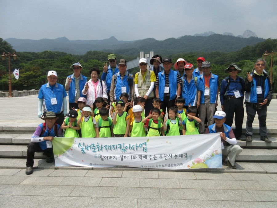복지1과 실버문화재지킴이사업 1. 3세대 통합 프로그램 '할아버지. 할머니와 함께 걷는 북한산둘레길' 북한산들레길지킴이 어르신들과 강북구육아종합지원센터에서 연계하여 참행복한어린이집 대상으로 프로그램 진행하였습니다. 국립4.19민주묘지에서 기념답 참배, 4.19혁명기념관 관람, 풀잎손수건 만들기 체험활동를 통해 1.3세대통합에 기여하는 기회를 가졌습니다.
